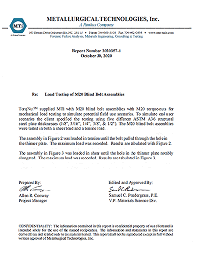 M20 Blind Bolt Spec Sheet: