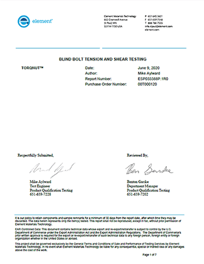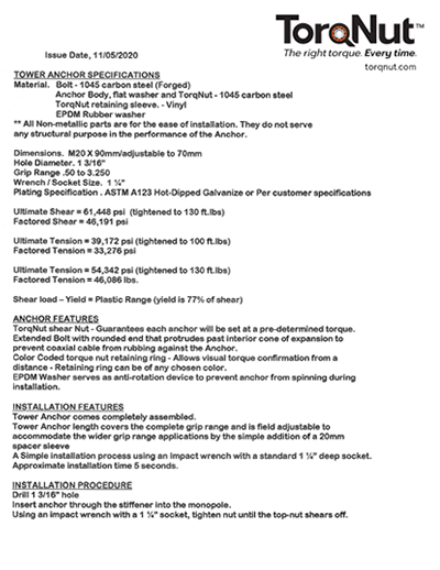 - Each Bolt includes M20 TorqNut to assure proper torque every time and easily confirmed from a distance